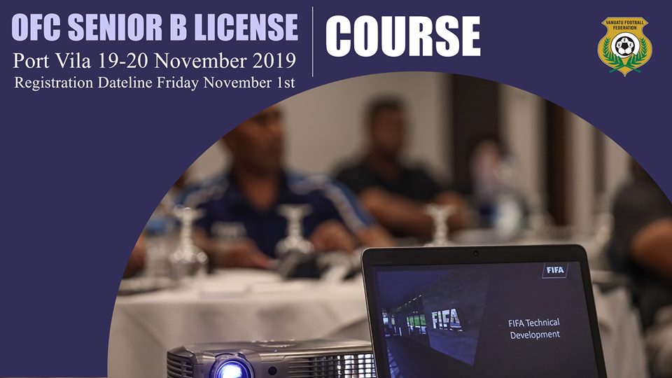 The OFC Senior B License course will be conducted in Port Vila from 19-20 November 2019 and registrations will close this Friday November 1 2019. Call Vanuatu Football Federation on 7727161 to place your name for observation and assessment….