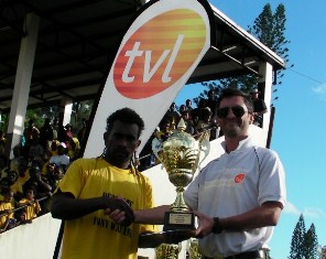 Tupuji Imere defender Timtim handles the ball in his own penalty area in 15 minutes as Tafea young defender Kevin Shem step up and sent Imere keeper Sika Alfred the wrong way as the ball hits the back of…